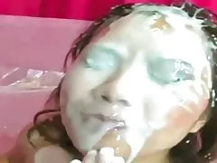Creampie - Langen Beinen Creampie Frauen durch zwei Schwänze sondiert und ruft eine Gesichtsbehandlung